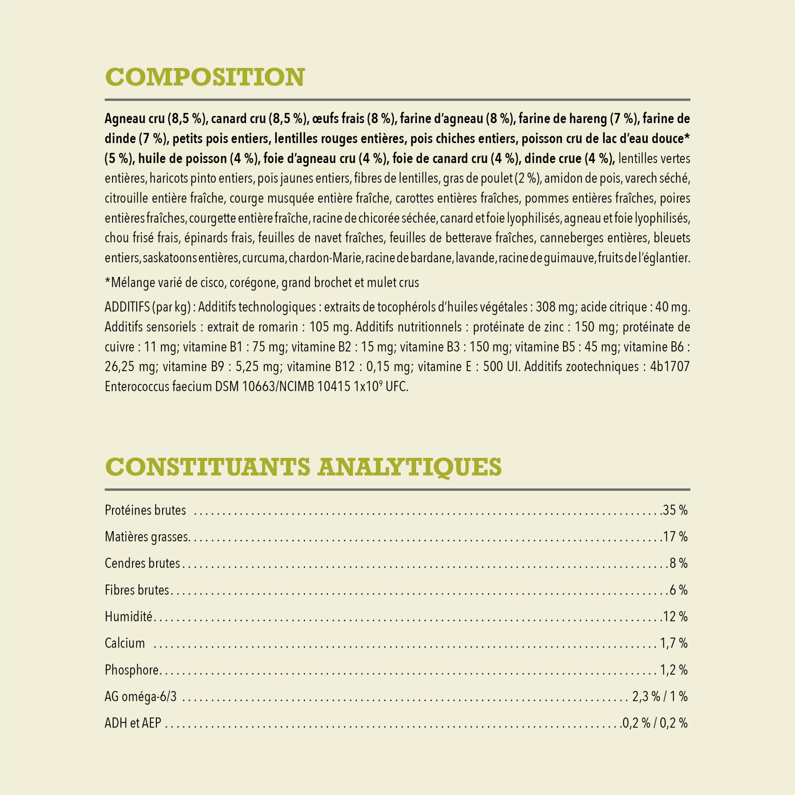 - First THREE ingredients are fresh or raw lamb, duck, and eggs, making this recipe nutrient-dense, with our highest protein offering.